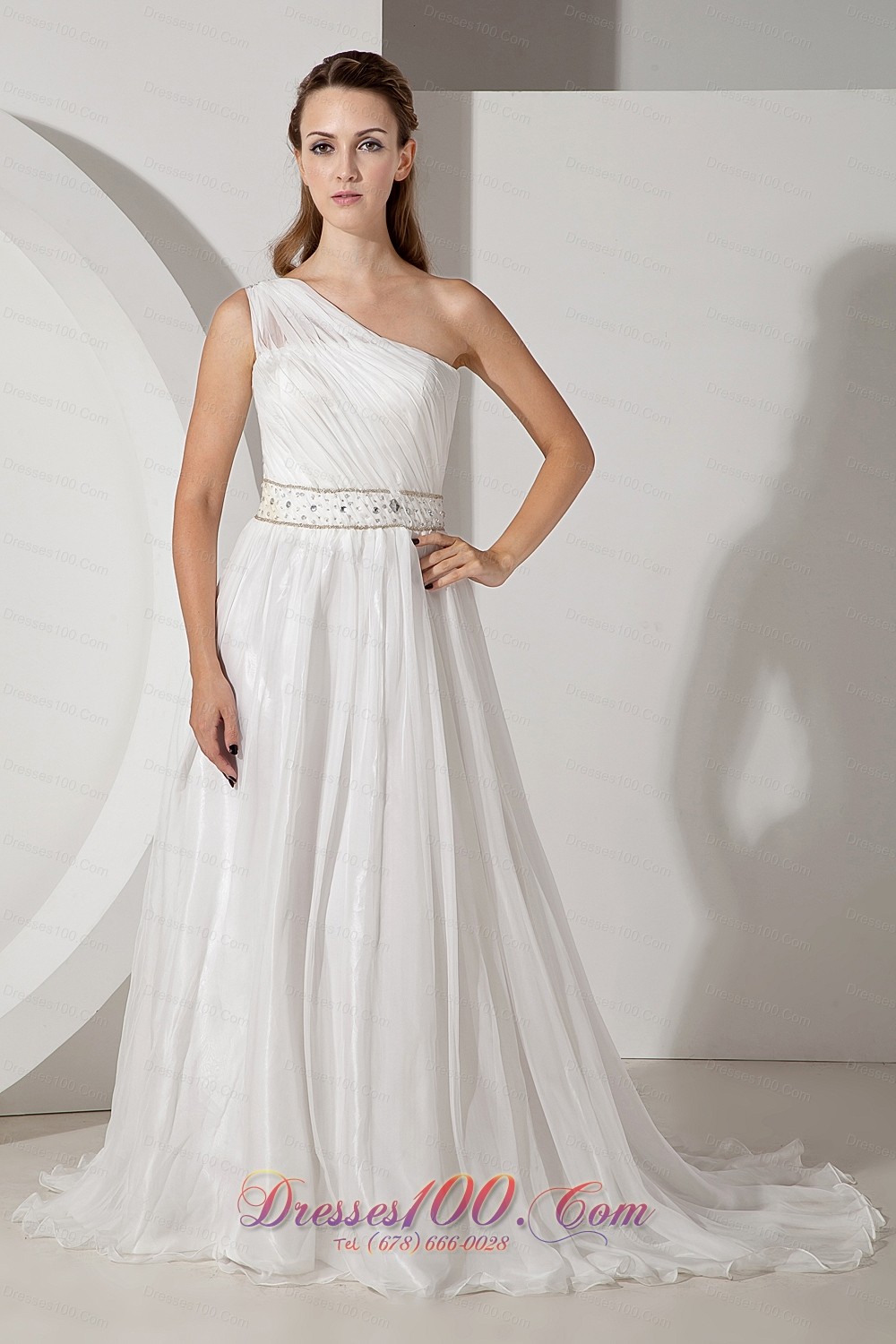 Empire One Shoulder Gilding Beach Wedding Dresses Court