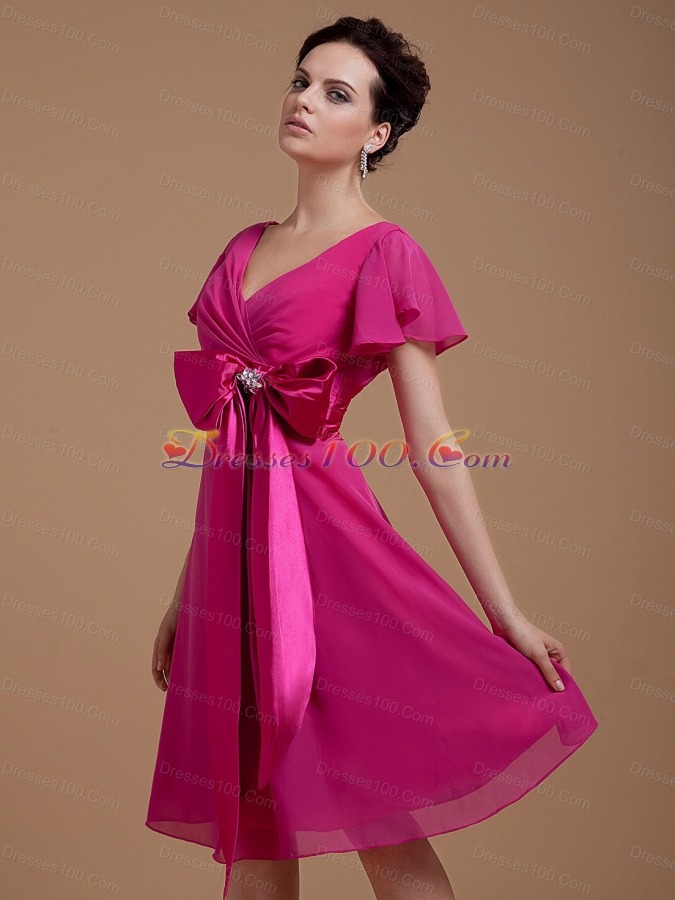 Mother Bride Dress Bowknot Short Sleeves Knee-length