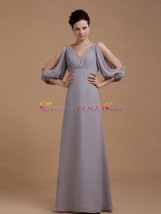 Grey Mother Bride Dress open Puffy 3/4 Length Sleeves