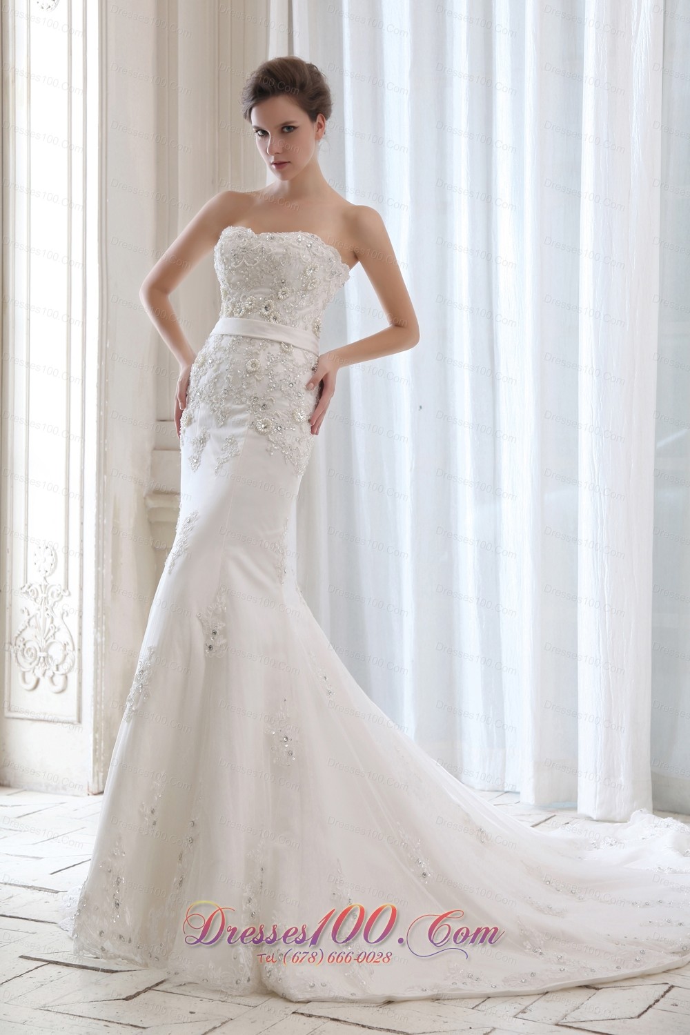 Best Wedding Dress Mermaid Appliques Strapless Court Belt