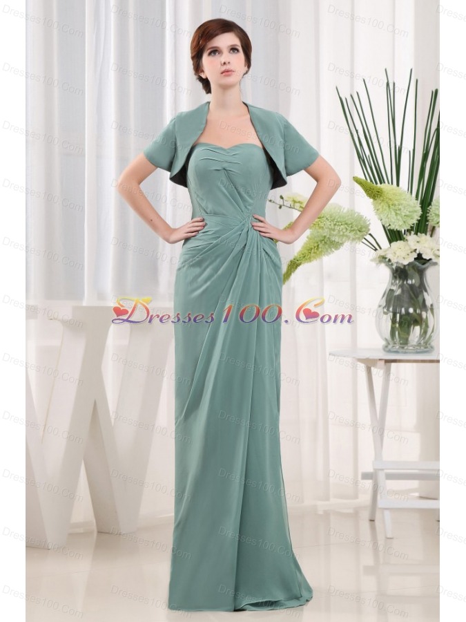 Cadet Blue Column Ruch Mother Bride Dress Long