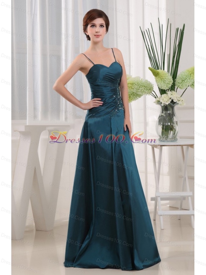 Teal Straps A-Line Long Appliques Mother Bride Dress