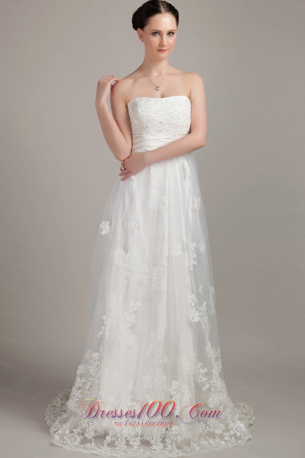 Fairy Tales White Wedding Dress Column Sweep Lace Appliques